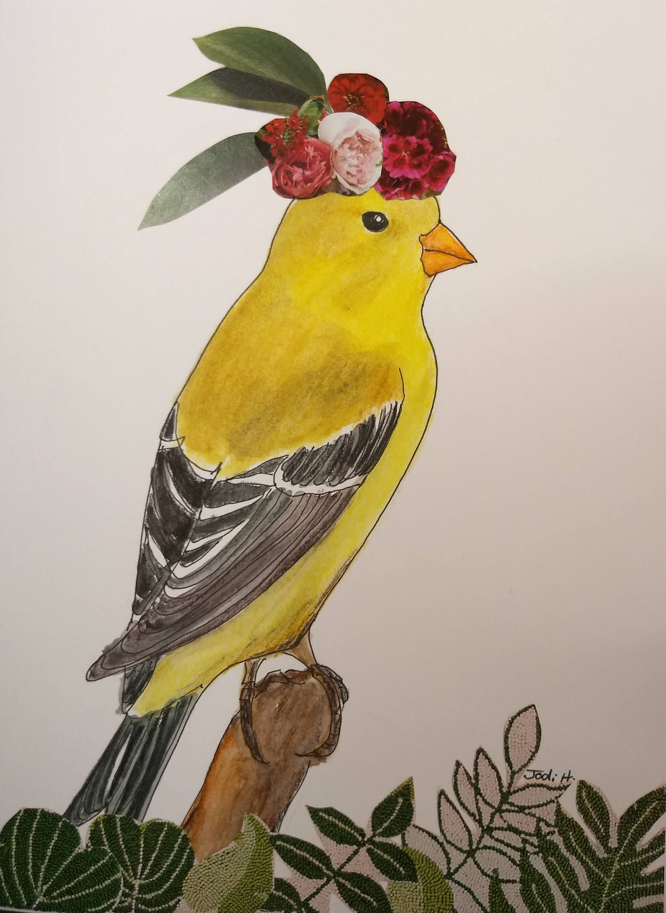 Goldfinch moms aren’t quite this gold but maybe this one is special. Like you. Hope you are having a lovely day. I’m excited to now have a work area in one half of my bedroom. A desk, chair and plenty of light. Next to the book shelves which I’m culling in order to  have space for my art supplies. Which are currently in the attic. Previously I worked in the dining room but was always having to put stuff away to use the dining table for dinner. Which was a good reason to not start on anything. So now I can leave work out on my desk and it’s quiet up there…really great. Yes, lots of clutter, but it’s PRETTY clutter!