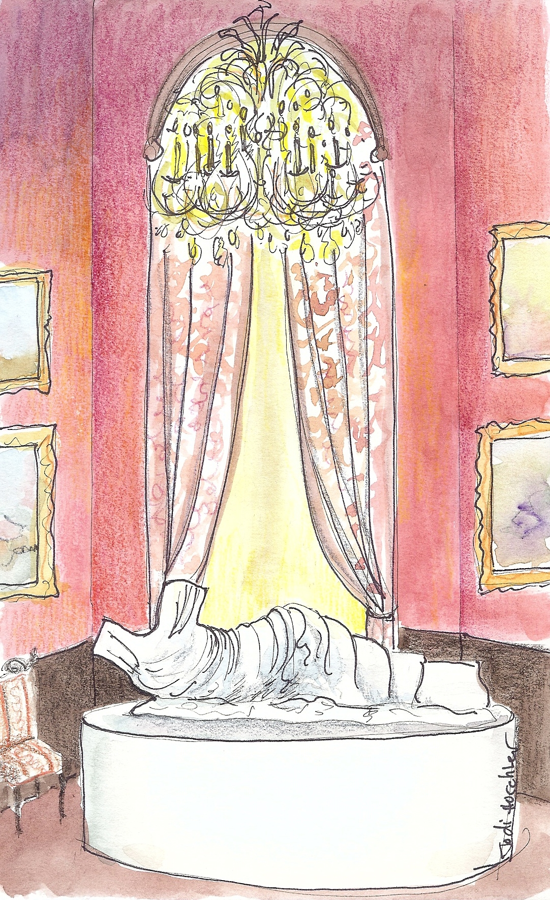 Above is my version of the room; to the right is a photo of the real deal. It looks like an invisible woman lounging in a translucent dress. Quite lovely. Especially if you are there in the room looking at it. You should go.