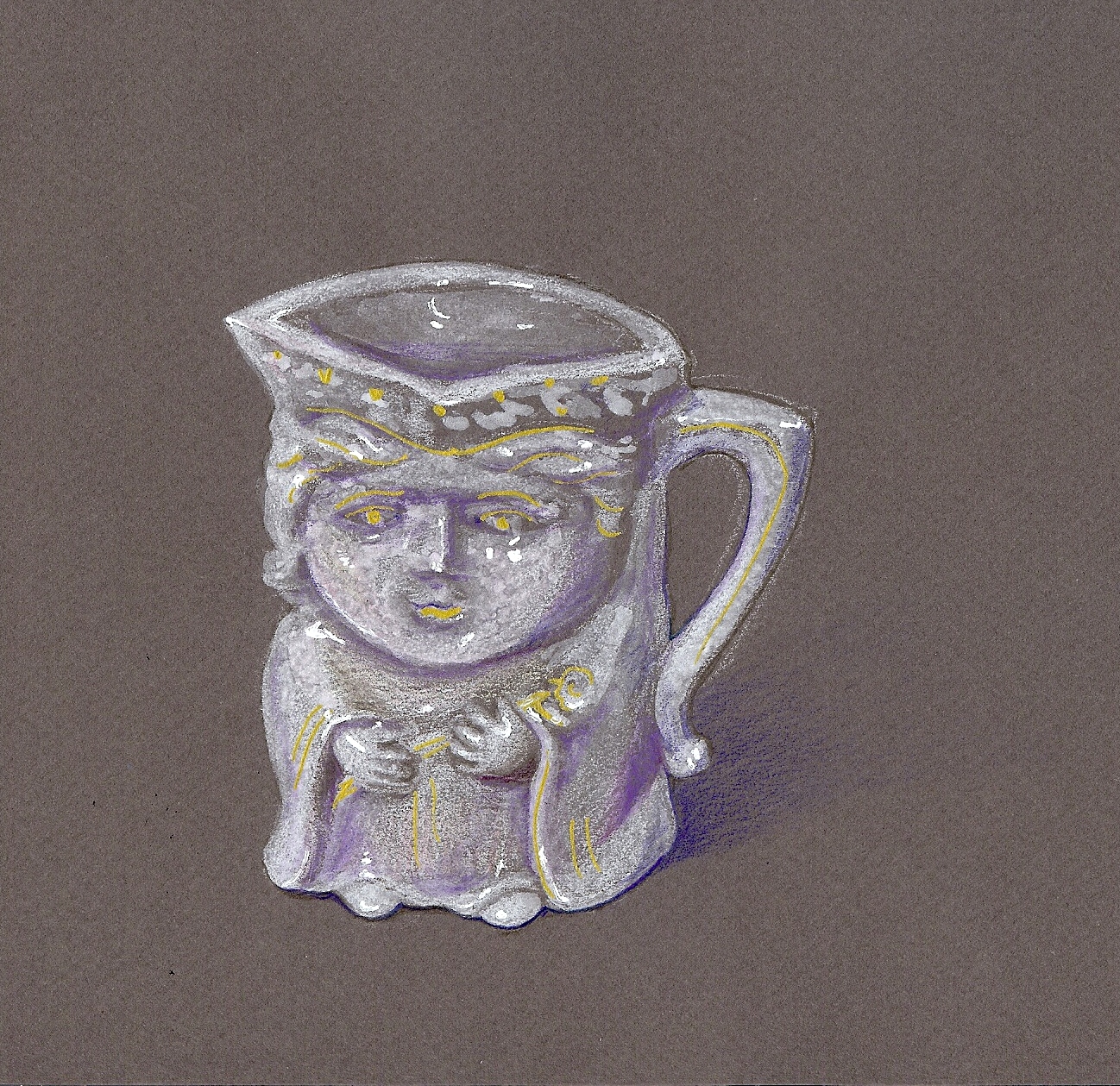 This little queen creamer is one of the more interesting ones I have from my Aunt Madeline’s collection. Says Japan on the bottom. Looks like an Alice in Wonderland character, right? Though I’ve never actually read that book.