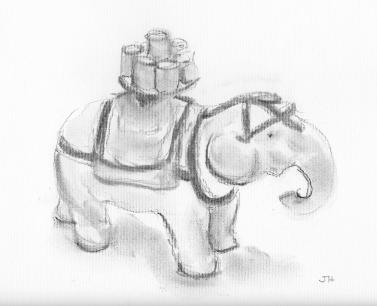 Sam and I did three of the timed charcoal sketches that I mentioned in the last post. I should have included Sam’s camel in that post but I wasn’t thinking and hadn’t gotten his permission. So now here are our elephants (mine on top and Sam’s below), and his camel (at the bottom). His drawings are charming. Just like him.