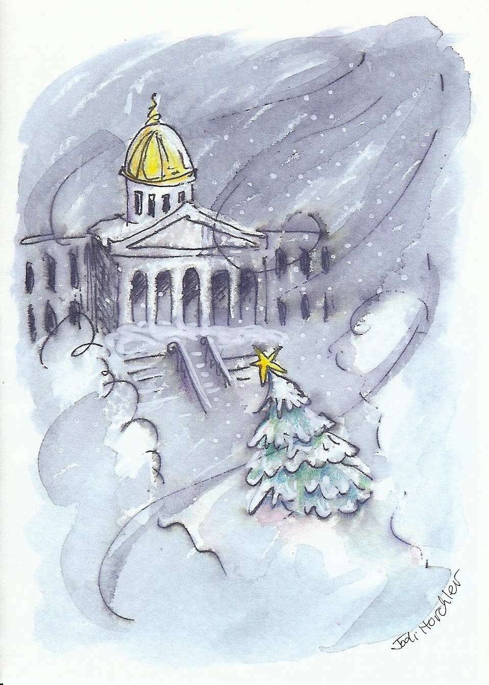 Best wishes to you all in this new year. Hope it’s a good one. My new year’s resolution is to be a better blogger. Seeing as how I’ve been the lamest blogger ever this past year. Busy with other stuff, side-tracked by bead work, but it’s just not the same. I’ve missed doing the frequent artwork to show you. Got to get back in the groove. These are barred owls, which never hang out this many together in one tree… but wouldn’t it be cute if they did? Micron pen and watercolor. Cheers.